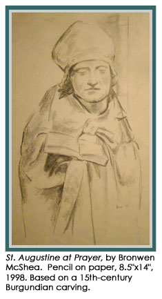 And so I ask Saint Augustine of Hippo, the Doctor of Grace: Please pray for PILGRIM, for all who make it possible, and for all who come by to visit us on the web. Let us pray with you, as you say in the Confessions: "O Lord have mercy upon me and grant what I desire. For, as I think, my desire is not of the earth, nor of gold or silver and gems or fine raiment or power and glory or lusts of the flesh or the necessities of my body and of this our earthly pilgrimage: all these things shall be added unto us who seek the Kingdom of God and Thy Justice." In nomine Patris, et Filii, et Spiritus Sancti.